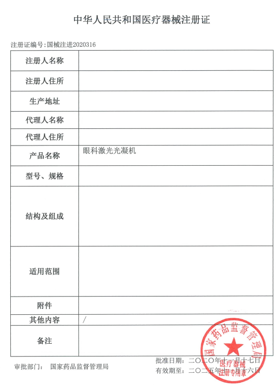 中華人民共和國醫(yī)療器械注冊(cè)證(樣例)