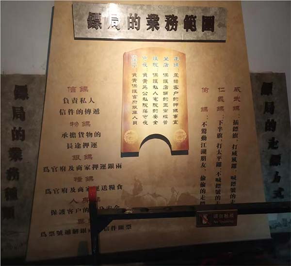 其次我們?nèi)チ酥袊S局博物館和日升昌票號,中國鏢局博物館它全面地講述了鏢局的發(fā)展歷史,介紹了鏢局在封建社會(huì)后期對商品流通領(lǐng)域做出的特殊貢獻(xiàn)。從鏢局的業(yè)務(wù)范圍,我們可以了解到古代鏢局的責(zé)任之重大。日升昌票號。它是銀行業(yè)的鼻祖,也是中國民族銀行業(yè)的先河。看到這些也正是我們物流行業(yè)所涉及到的,我們也要牢記使命,做到客戶至上、服務(wù)至上。