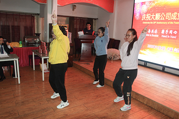 見證了王家大院的宏偉景觀后下午我們到了第二個景點平遙古城,到了平遙古城的小巷,公司依舊安排了當?shù)刈罹咛厣牟宛^,大家吃過晚飯后到了最為關(guān)鍵的晚會環(huán)節(jié),各部門都為此次晚會做了精心準備,首先是晚會的主持、然后是所有女生都參加的《舞蹈串燒》,監(jiān)管庫庫朗讀《我愛上班》,國內(nèi)部三句半《我們都是大順人》、啞劇《美麗女人》、新編黃梅戲《我們的大順》、小品《一切都是最好的安排》、歌曲《男兒當自強》和《國風(fēng)走秀》等節(jié)目,大家都發(fā)揮了超常實力。