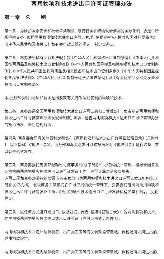 兩用物項和技術(shù)進(jìn)出口許可證管理辦法