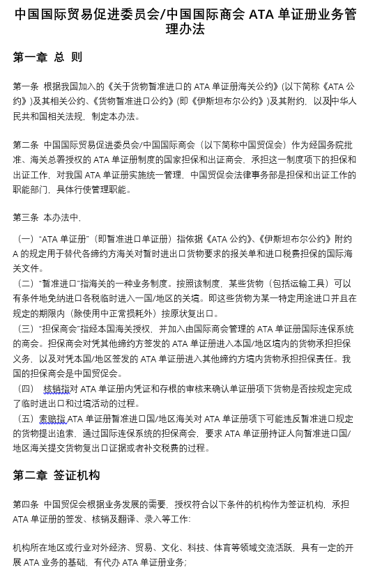 中國(guó)國(guó)際貿(mào)易促進(jìn)委員會(huì)/中國(guó)國(guó)際商會(huì)ATA單證冊(cè)業(yè)務(wù)管理辦法
